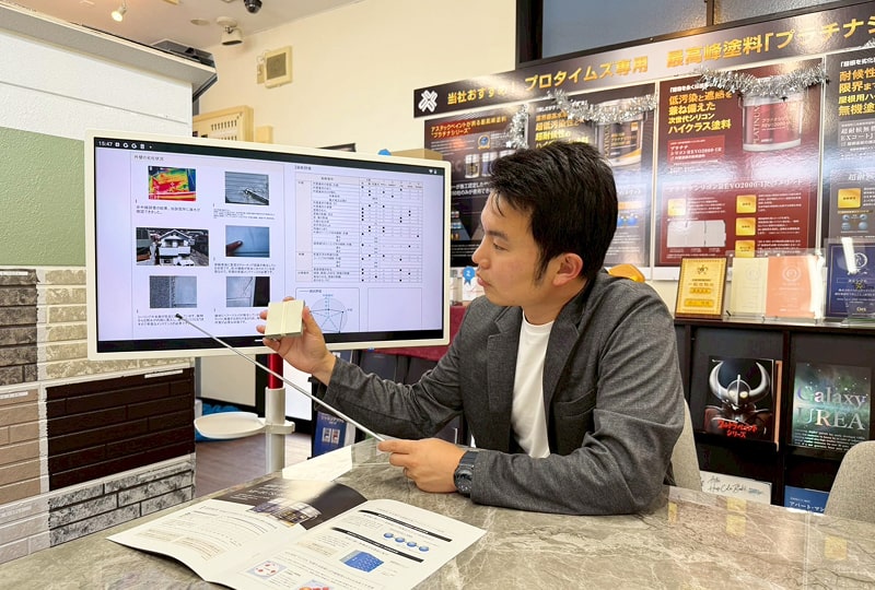 そして何より、ショールームでは一級塗装技能士や外装劣化診断士など専門資格を持つスタッフが、分かりやすい資料と実物を使って丁寧に説明してくれるのが特徴です。カタログだけでは分からない細かな違いや、家の状態に応じた最適な塗料の選び方まで、安心して相談できます。