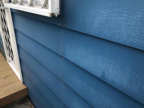 これは「チョーキング現象」と呼ばれ、塗膜が劣化して顔料が粉状になって表面に現れる症状です。塗膜の防水性が低下しているサインで、このまま放置すると、雨水が建物内部に入り込み、建物の劣化を早めるおそれがあります。