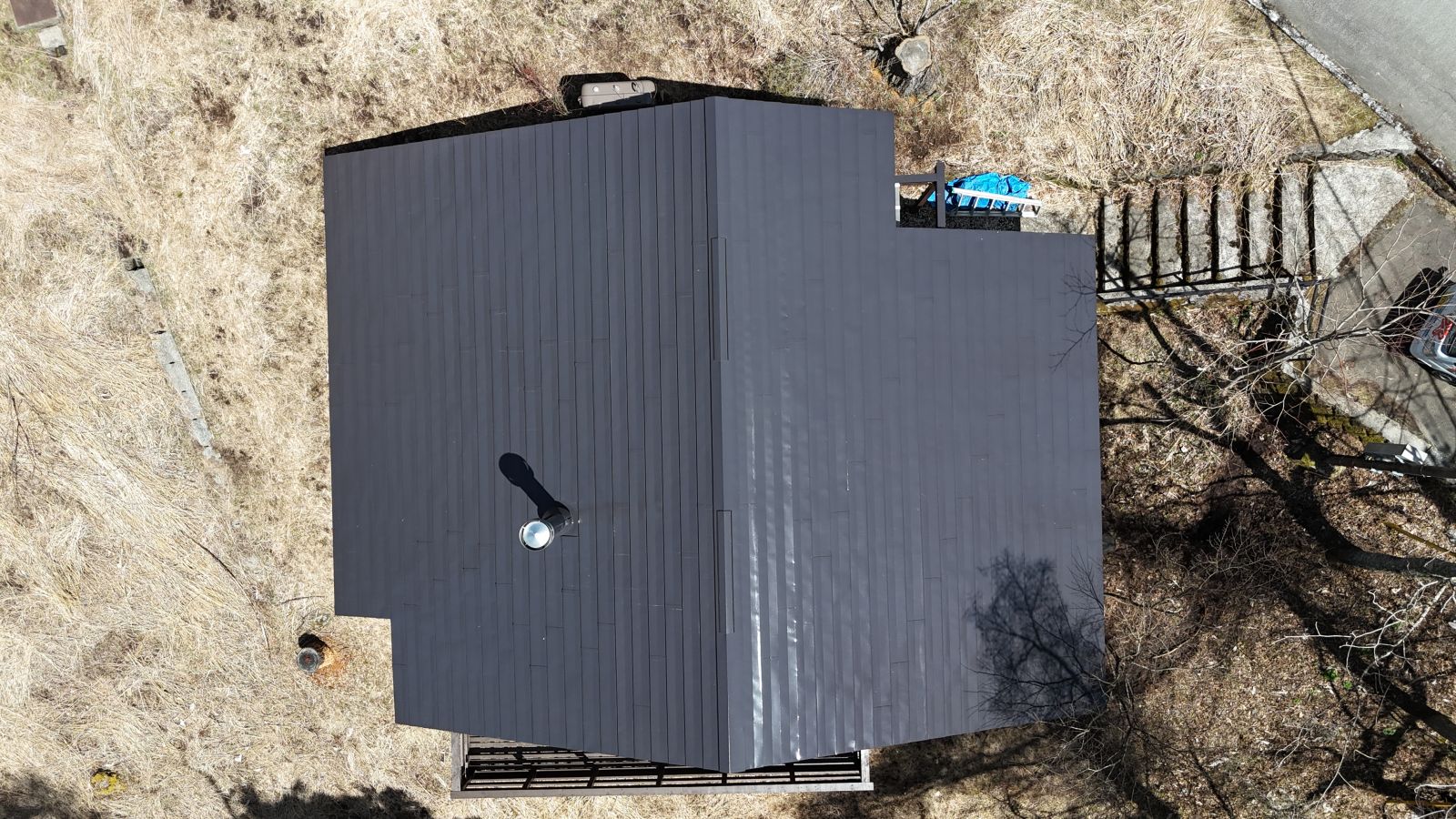 外壁はアイアンバーグをベースに、落ち着きの中にもデザイン性のある仕上がりとしました。屋根はキャビアブラウンを採用し、全体の色合いに統一感を持たせています。自然豊かな山中湖の景観にも調和する、上品で温かみのある外観となりました。