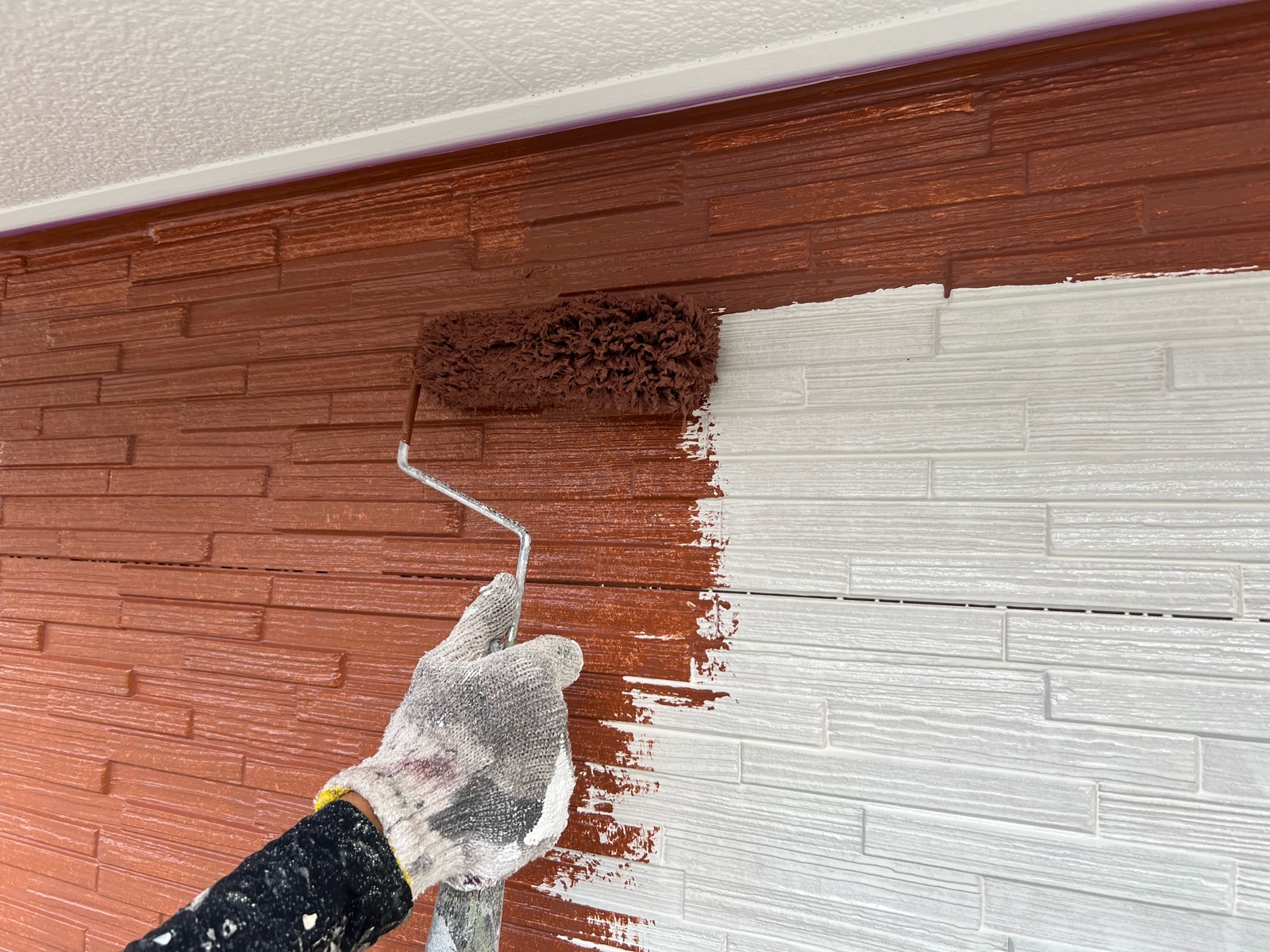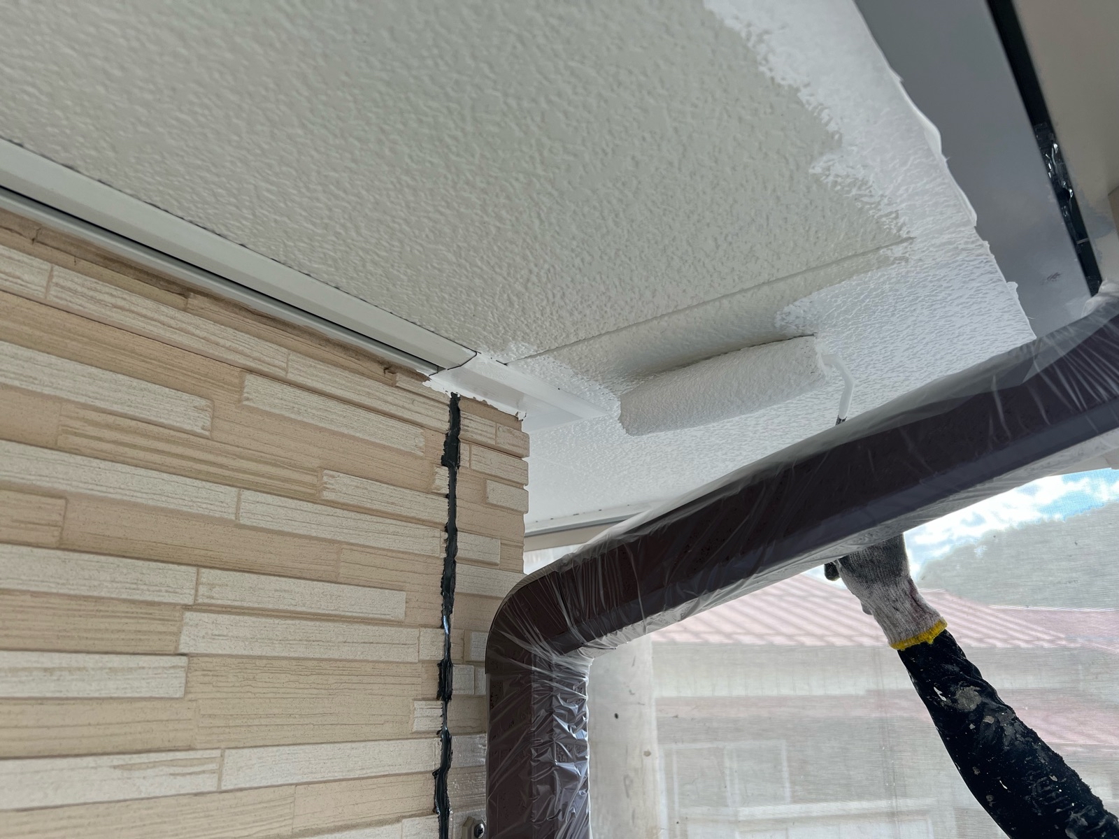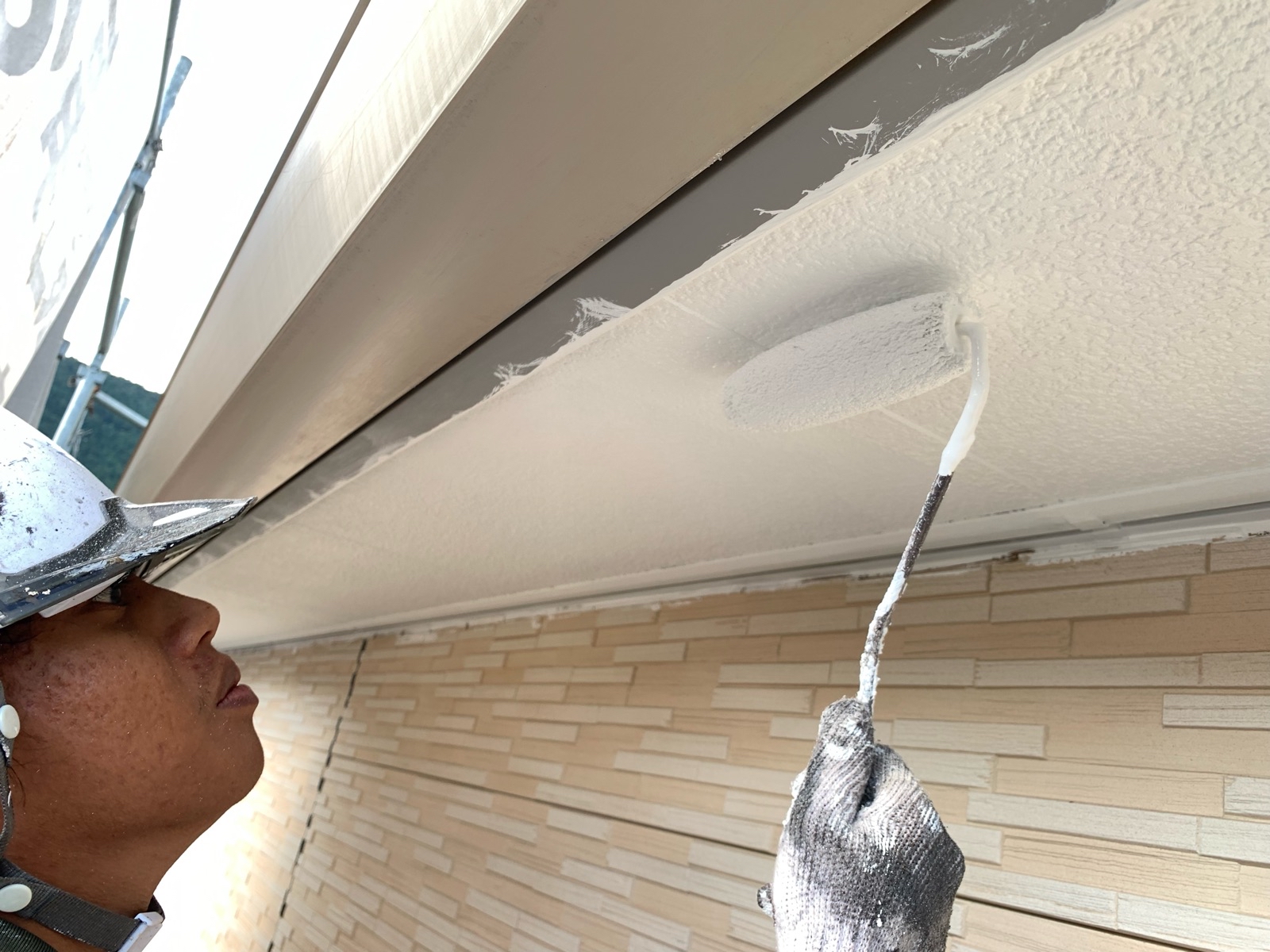 軒天上塗り一回目