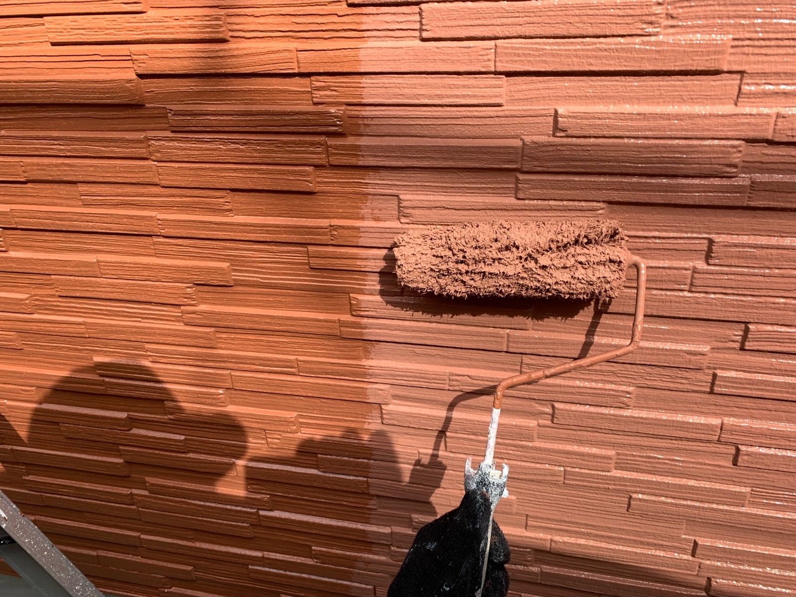 外壁:高圧洗浄 → 下塗り → 中塗り(テラコッタ) → 上塗り(チョコレートブラウン)