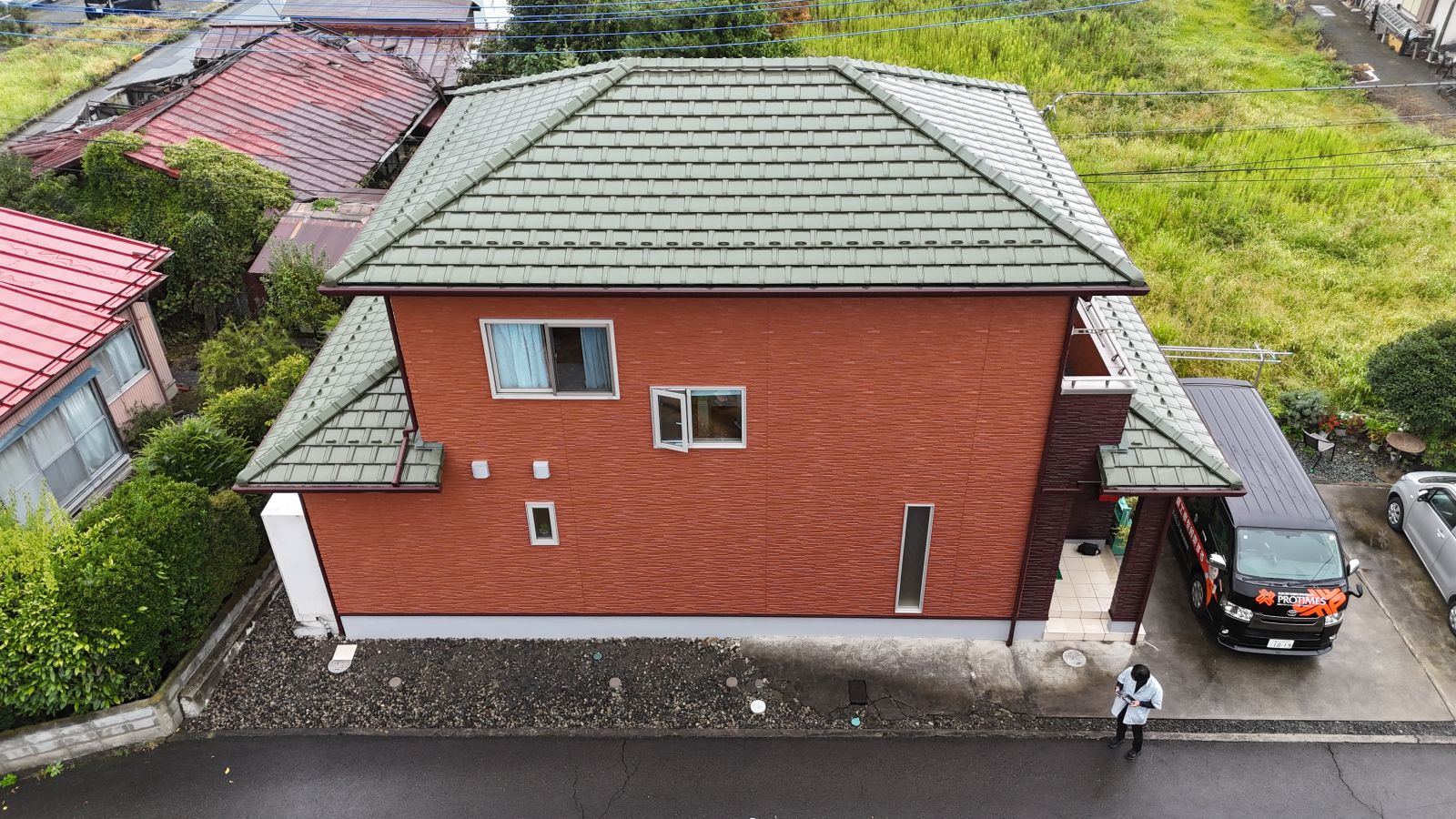仕上がりは、温かみのあるテラコッタとチョコレートブラウンの組み合わせが美しく、さらに光触媒コーティングで長期間美観を保てる仕様となりました。