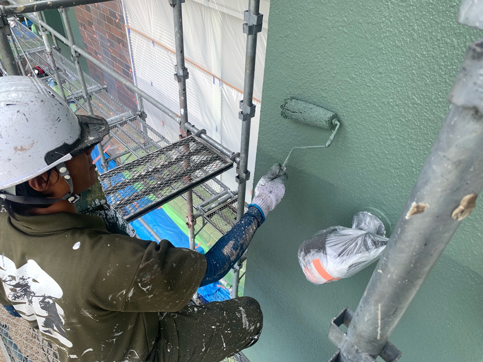 色褪せや汚れが目立っていたため、美観回復を目的に【アステックペイント エクスファイン艶消】(色:フレンチグリーン)を選定しました。