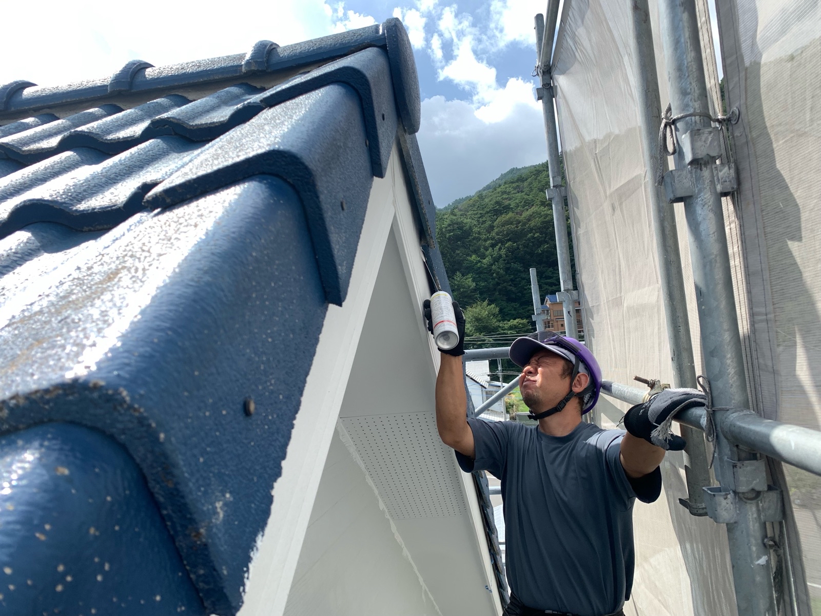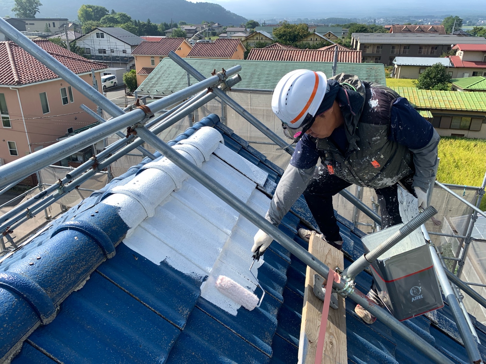 塗料には、**アステックペイントの超耐候無機EXコート(ミッドナイトブルー)**を採用しました。