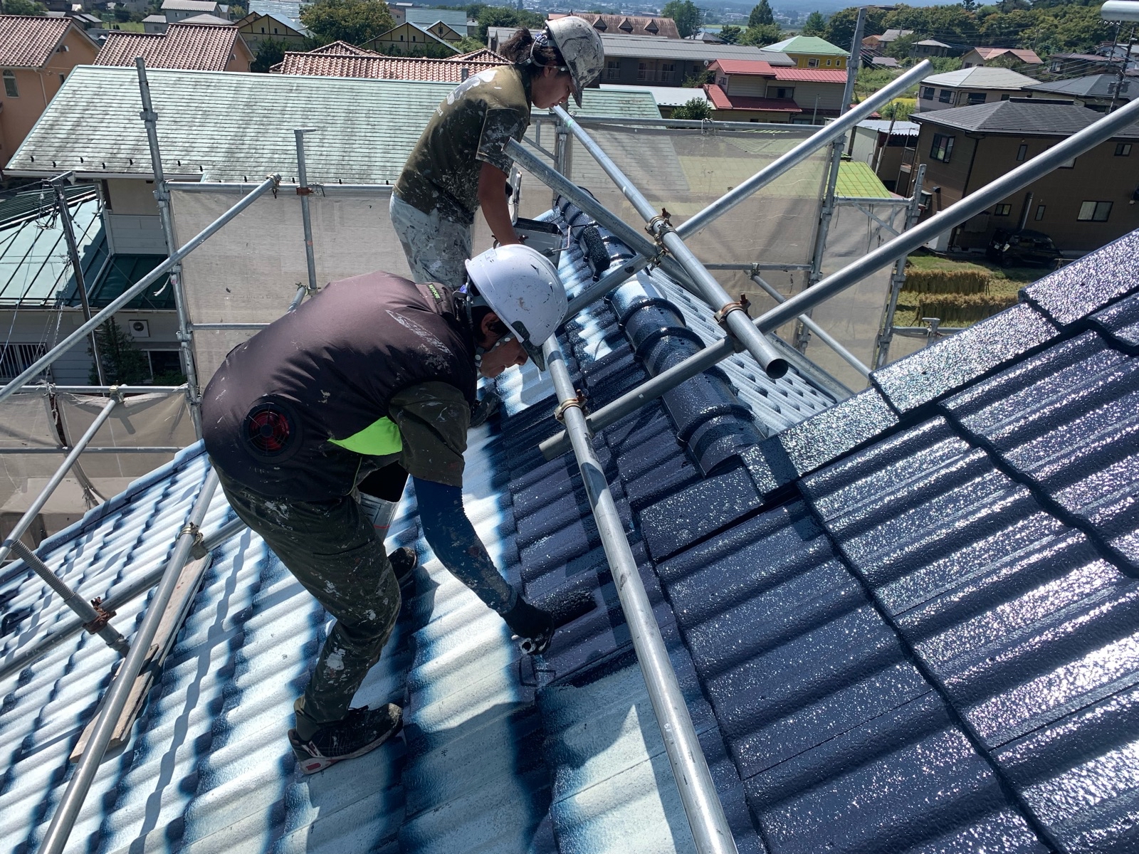 屋根は急勾配のセメント瓦だったため、足場や安全対策を徹底しながら作業を実施。