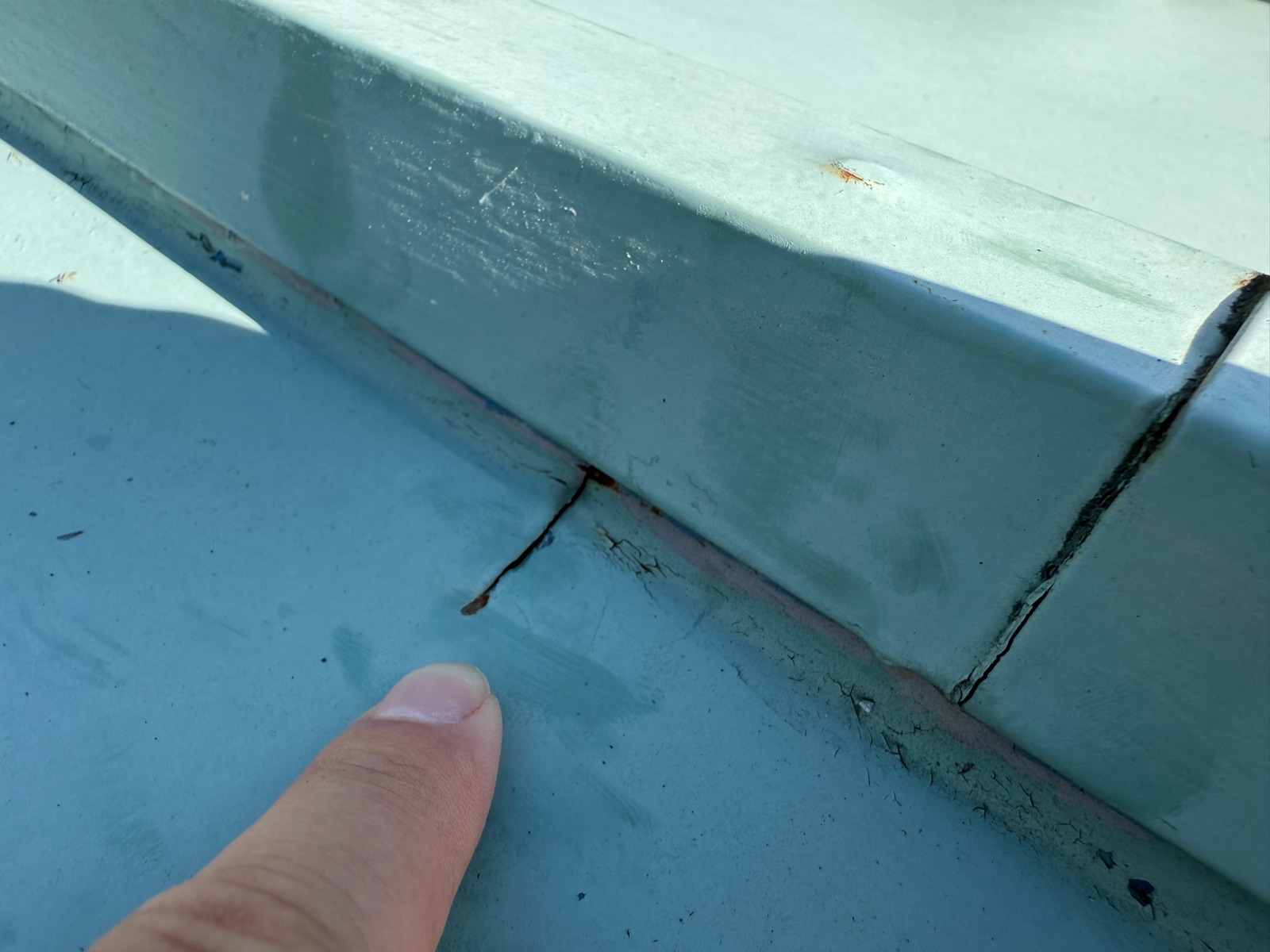 屋根板金が施工時に誤ってハサミで切られたまま取り付けられている箇所があり、