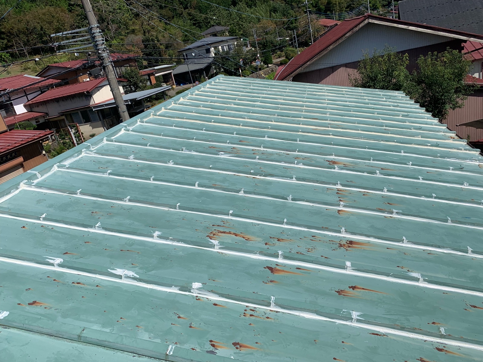 必要箇所の補修+簡易的な防水処理+屋根全体の塗装工事で対応いたしました。